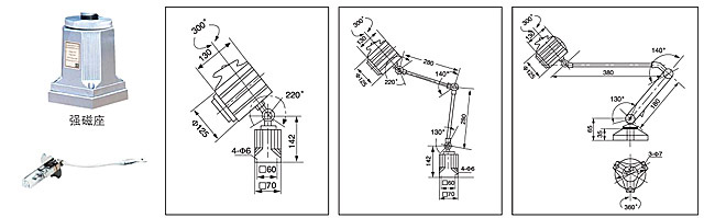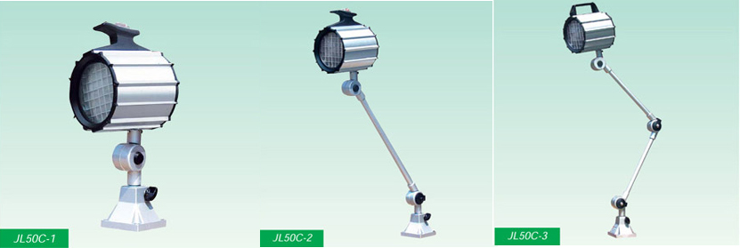 JC50C光源采用鹵鎢燈泡聚光封閉。有五個活動部位組合的工作燈。并具有防水、防侵蝕等優(yōu)點(diǎn)。適應(yīng)于各種大、中型數(shù)控機(jī)床。組合機(jī)床,加工中心及普通機(jī)床的照明。