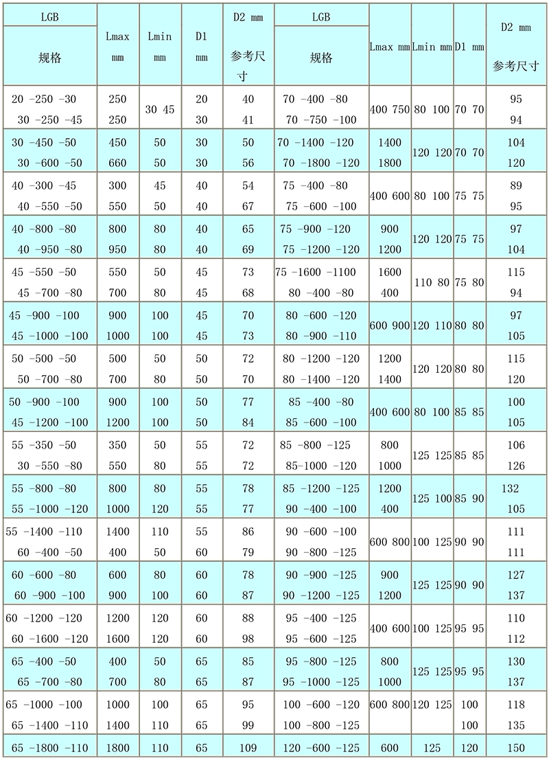 2.用戶單位提供保護套D、Lmax、Lmin(特殊要求D2)(代號見圖),由我廠設計制造,價格統一按標準規格引出計算。